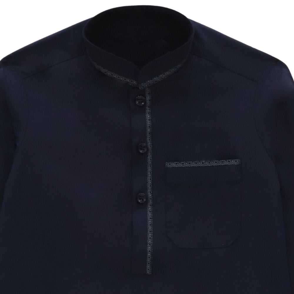 This ;boys’ Dark Blue shalwar kameez suit set. Made from high-quality Wash & Wear fabric, it is soft, breathable, and easy to maintain. Perfect for Eid, weddings, parties, and formal occasions.